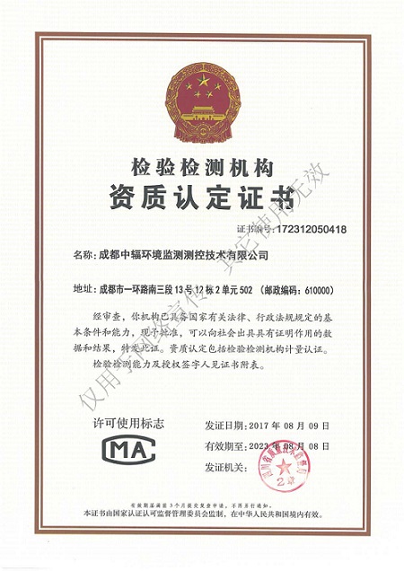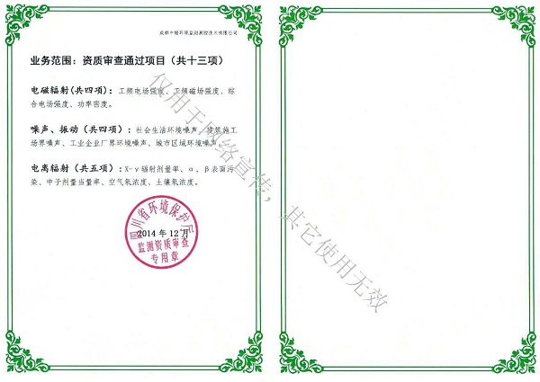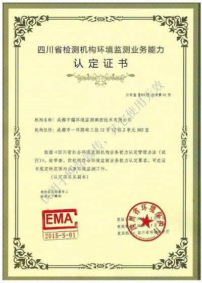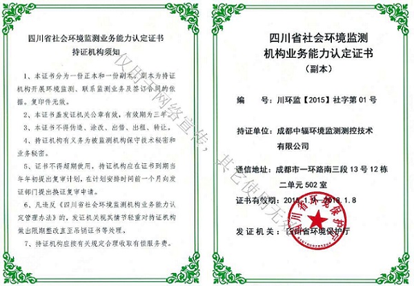 3)四川省检测机构环境监测业务能力认定证书(正本)